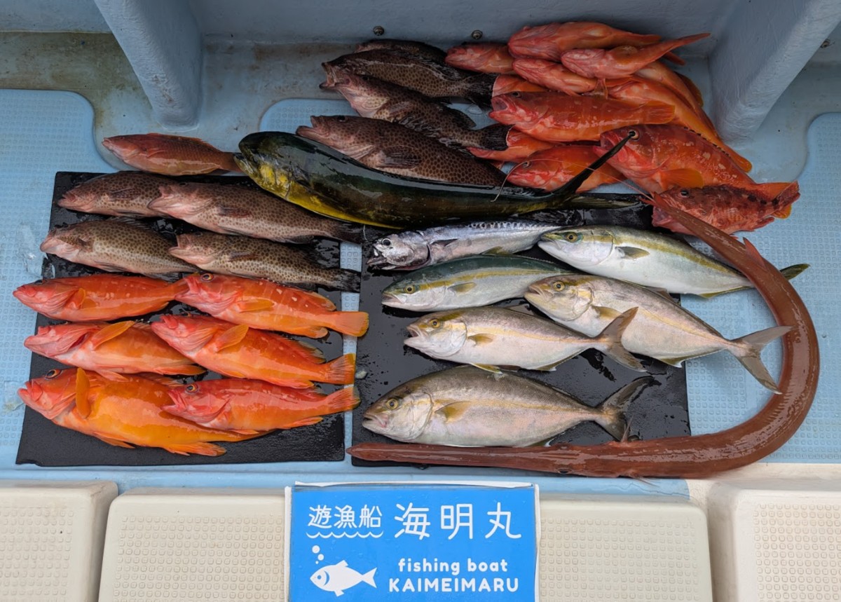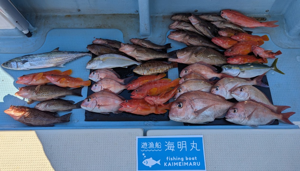 - タイラバ便での出船でした。台風ウネリがありましたので、近場のポイント中心に挑戦していただきました。<div>一日中あまり船が流れ流れない感じでしたので厳しい状況😢それでも少し船が流れれるタイミングでぽつぽつ釣れて何とかお土産キープしていただきました。青物がよく当たりフックアウト多数、今日一の魚はラインブレイクで残念でした😢</div><div>魚種はシオ、ツバス、オオモンハタ、アカハタ、アオハタ、キジハタ、カサゴ、アヤメカサゴ、タマガシラ、オジサンなどでした。</div><div>今日はお疲れ様でした。またの乗船お待ちしております。</div>