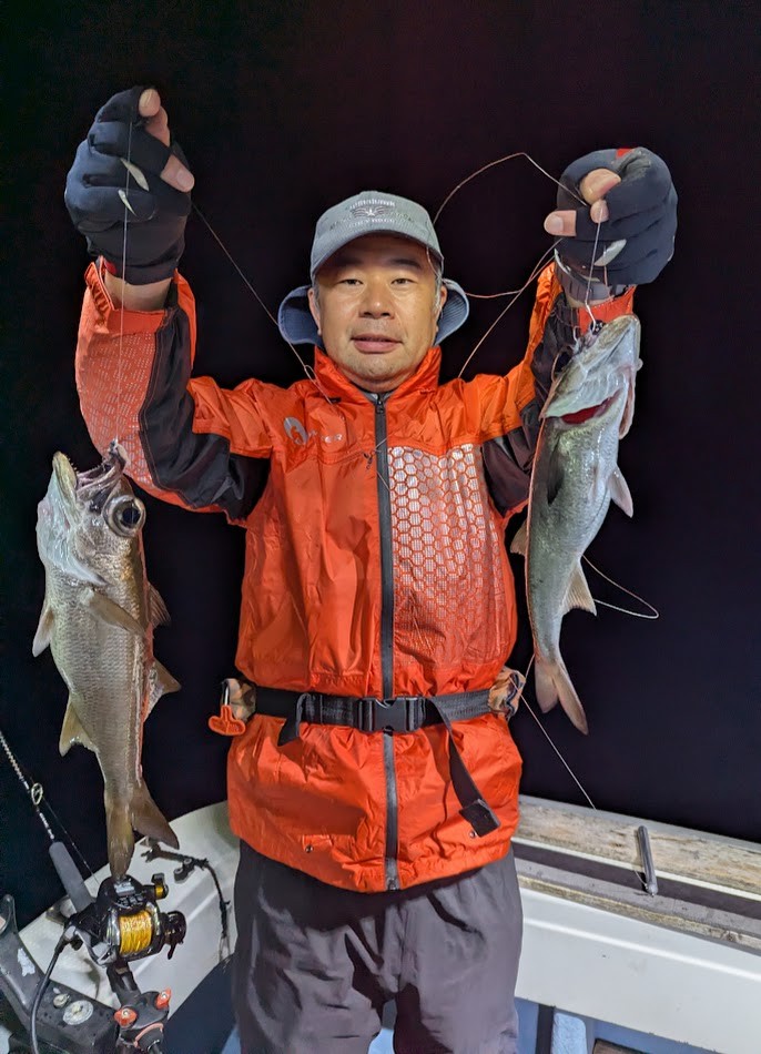 - ナイト沖便でムツ釣りの出船でした。後半は風予報でしたので、早上がり覚悟での出船でした。<div>暗くなってライトオンして間もなく魚探に反応がで出したらぽつぽつ釣れだしてイイ感じ😊上手く追い食いさせ方は数を伸ばしていました。風も強くなってきましたので、早上がりで終了でした。魚種はムツ、クロシビカマス、ゴマサバ、アヤメカサゴなどでした。</div><div>今日はお疲れ様でした。またの乗船お待ちしております。</div><div><br></div>