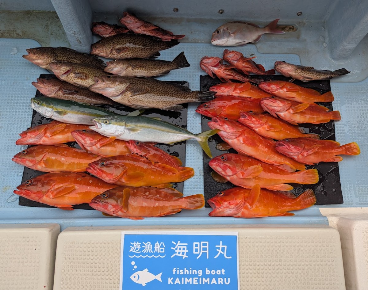 - SLJ、タイラバ、一つテンヤでの出船でした。風予報でしたので、近場のポイント中心に挑戦していただきました。<div>根魚メインで挑戦して頂きぽつぽつ釣っていただきました。アカハタ、ナイスサイズもありました。小さめの根魚多数リリースありがとうございます。</div><div>魚種はマダイ、ツバス、オオモンハタ、アカハタ、カサゴなどでした。</div><div>今日はお疲れ様でした。またの乗船お待ちしております。</div>