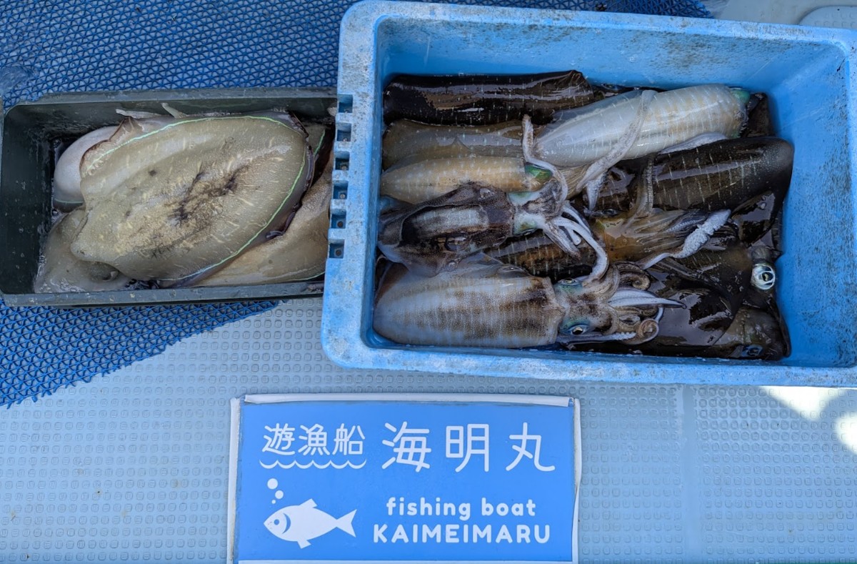 - ティップランでの出船でした。朝一からぽつぽつ釣れてイイ感じ😊釣れにくい時間帯もありましたが一日中釣れてました。サイズはまだシーズン初めですので小さめでした。フックアウト多数で残念でした。魚種はアオリイカ、コウイカでした。<div>今日はお疲れ様でした。またの乗船お待ちしております。</div>