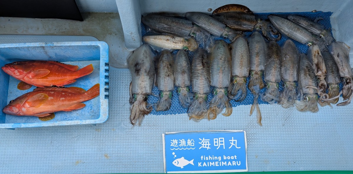 - オリジナルコースでティップランでの出船でした。朝からぽつぽつ釣れてイイ感じ😊全員キャッチしていただきました。<div>中盤は当たりが無くなり厳しい状況😢ポイント移動しながら・・・最後はプチ時合が来て!連続ヒットがあったりで終了でした。魚種はアオリイカ、アカハタなどでした。</div><div>今日はお疲れ様でした。またの乗船お待ちしております。</div>