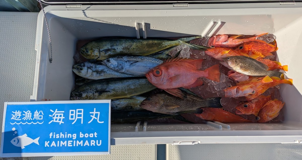 ライトジギング、タイラバでの出船でした。深場中心に挑戦していただきました。朝一はいい感じで、ワラサ、ツバス、チカメキントキなど、あとはいいサイズの魚がヒットしましたがフックアウト😢それからは失速・・・ポイント移動しながら頑張っていただきましたがイマイチ・・・😢たまにシイラの群れが来てくれて遊んでいただきました。中盤~後半でもフックアウト多数で残念でした😢魚種はワラサ、ツバス、シイラ、ヒラソーダカツオ、、チカメキントキ、オオモンハタ、アカハタ、ウッカリカサゴ、アヤメカサゴ、オジサン、マトウダイなどでした。